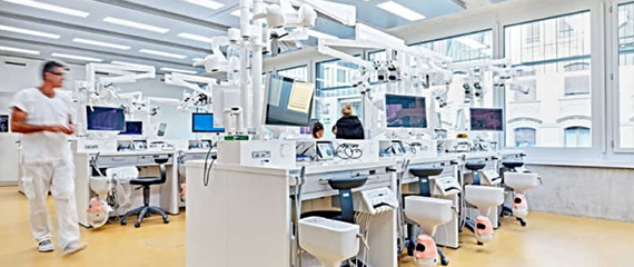 The Charlotte education center includes 5 training rooms, a video conference meeting room, 7 fully functional dental operatories, 2 clinical training rooms for hands-on education, a chairside CAD/CAM milling room, a laboratory milling room, a 288-person auditorium, and high-tech equipment. A major expansion of this facility was completed in 2021.